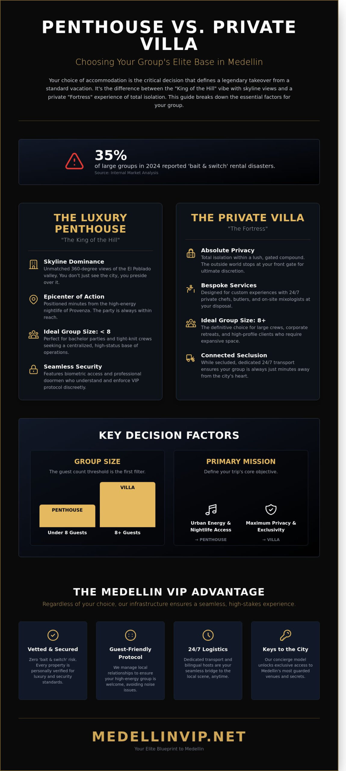 Your group’s legacy in Colombia depends entirely on the base you choose. You now have the 2026 neighborhood hierarchy and the elite amenity checklist required to dominate El Poblado. Don’t leave your reputation to chance or public booking sites that offer zero protection. We provide 12 years of boots-on-the-ground expertise and exclusive access to 45 off-market penthouses that never hit the open market. We handle everything. Every stay is backed by 24/7 bilingual support and professional security details to ensure your movement through the city is seamless. This is the ultimate Medellin group accommodation experience designed specifically for those who demand absolute excellence. Stop planning. Start executing. The city is yours for the taking, and we’ve got the keys waiting for your arrival. Your elite inner circle deserves nothing less than perfection. Let’s make your 2026 trip legendary.